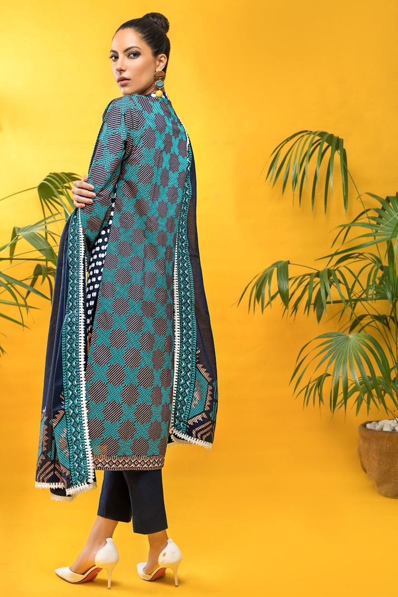 Fabric: Gold & Lacquer Printed Lawn Dupatta – 2.5 meters Gold & Lacquer Printed Cambric Shirt with Embroidered Neckline on Organza – 1.75 meters Dyed Cambric Trouser – 2.5 meters |
