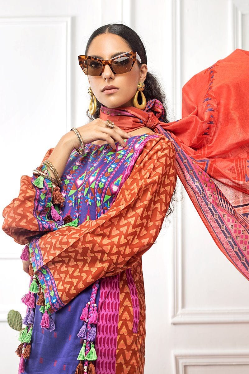 Fabric: Lacquer Printed Lawn Dupatta – 2.5 meters Silver Printed Cambric Shirt – 1.75 meters Dyed Cambric Trouser – 2.5 meters |