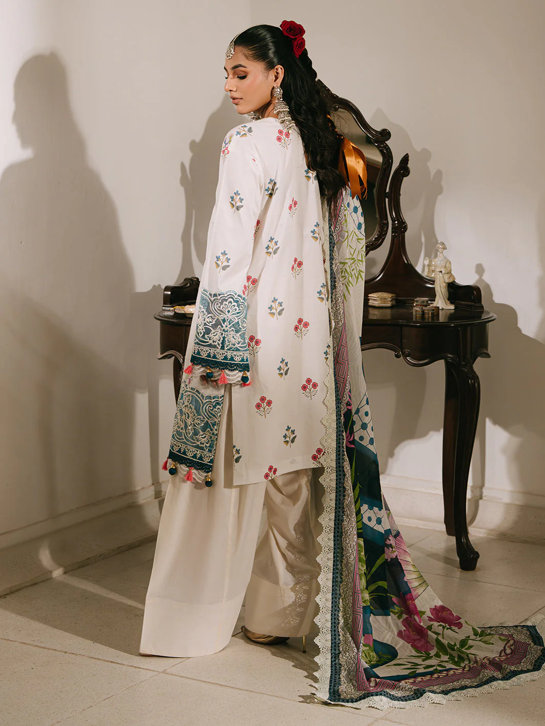 Fabric: Shirt Printed And Embroidered Front 1.25 Yard Printed Back And Sleeves 1.5 Yard Embroidered Front Border 0.8 Yard Embroidered Border 1 Yard Dupatta Printed Silk Dupatta 2.75 Yards Trouser Dyed Trouser 2.75 Yards |