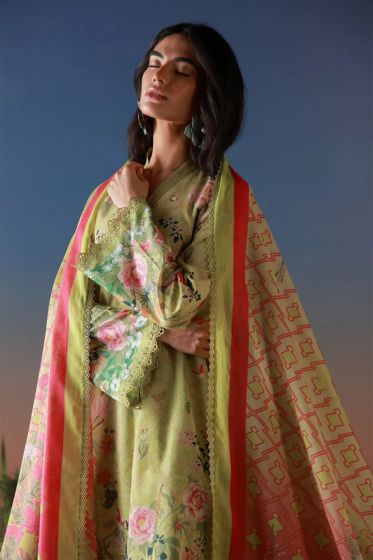 Fabric: Earthy olive greens layered with multicolored florals and subtle geometric accents. The dupatta adds softness and flow, complemented by coordinating pants. Rooted in tradition with a modern sensibility. 1-Digital Printed SHIRT (LAWN) -3M 2-Digital Printed DUPATTA (LAWN) -2.5M 3-DYED TROUSER (CAMBRIC) -2.5M |