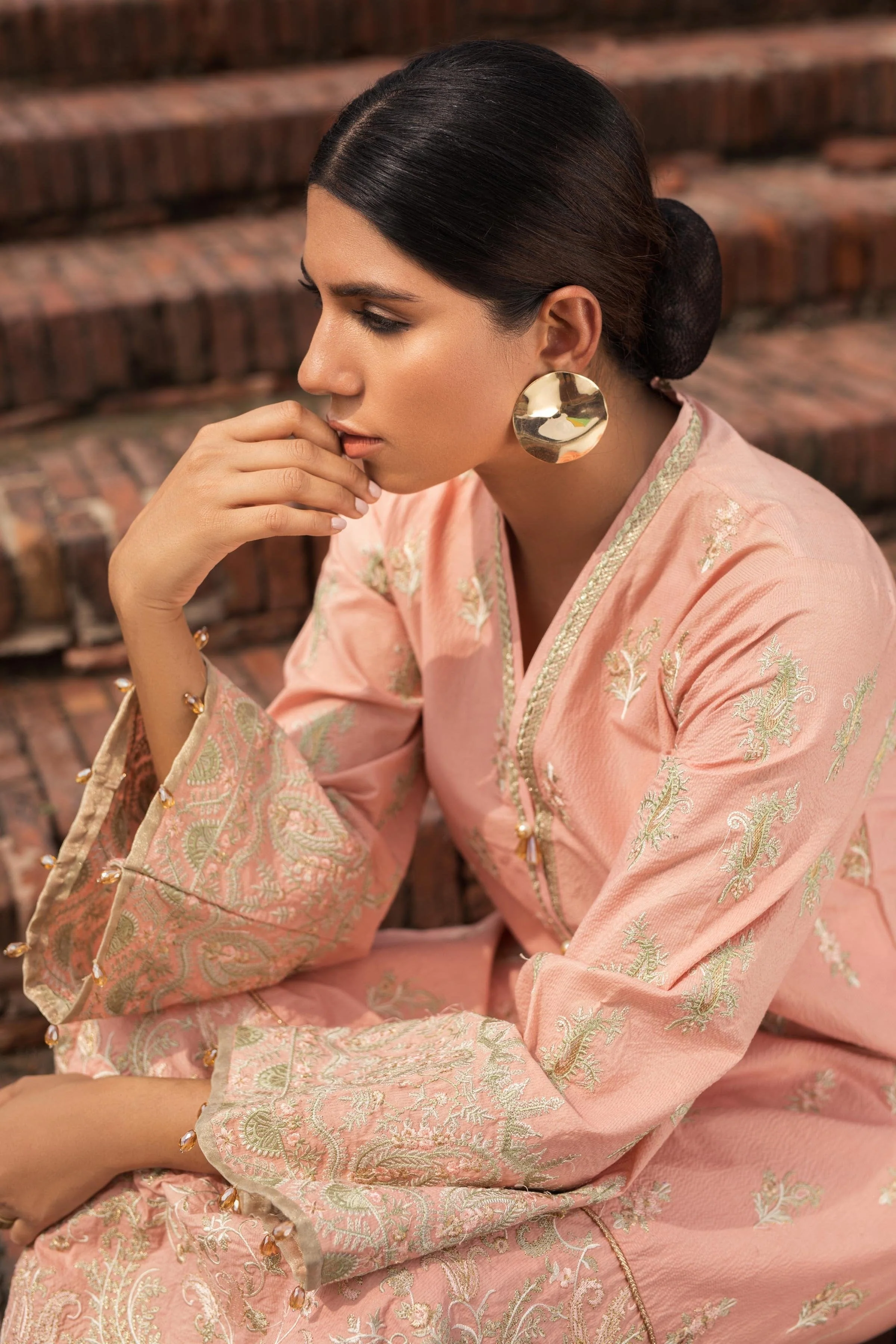 Fabric: This ethereal peach ensemble comprises of a worked zari cotton shirt and dyed slub cambric trouser. Multiple embroidered accents add to the traditional appeal of this look. Unstitched 2-Piece Shirt Color: Peach Pink Trouser Color: Peach Pink Style Note |
